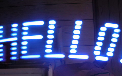 Commercial POV toys are usually some sort of led matrix attached to a spinning contraption, and display either a fixed or scrolling message. Those are fine, but the technical aspects of motorizing the display make it beyond the scope of a simple project. Therefore, my project relies entirely on elbow grease – swing the wand and watch the messages appear.